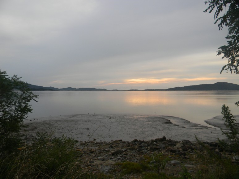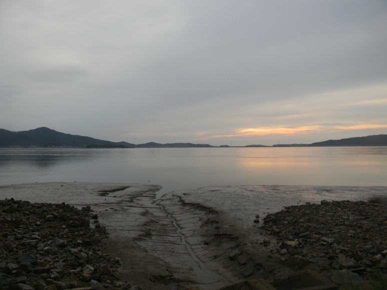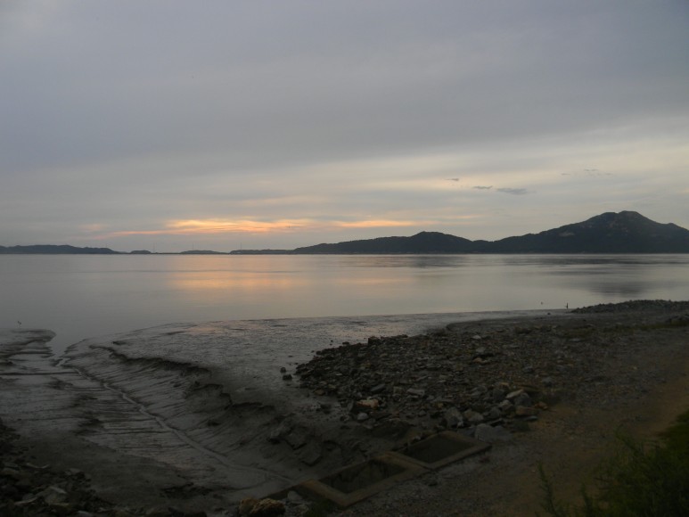 6. 계룡돈대 밑에 펼쳐진 검은 피부의 갯벌과 그 너머로 바라보이는 석모도
