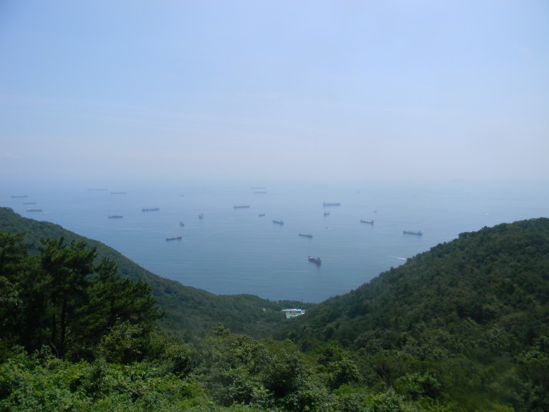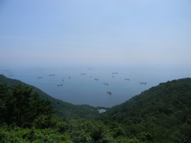 5. 나무들로 수해를 이루는 봉래산 서쪽 자락과 온갖 배들로 가득한 영도~송도 사이 바다