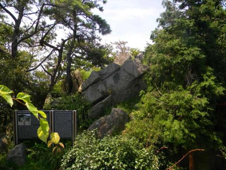 이곳이 봉래산의 2번째 봉우리인 자봉(아들 봉우리)이다. 자봉은 해발 387m로 정상에 쉼터용 정자가