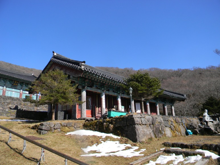 한라산 산주름에 묻힌 조촐한 경내에는 법당인 대웅전(대웅보전)을 비롯해 국성재, 종무소, 요사채 등