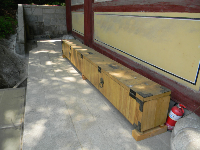 7. 만월보전 옆에 놓인 길쭉한 괘불함