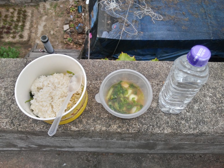 기다린 끝에 공양밥을 손에 쥐어들 수 있었다.