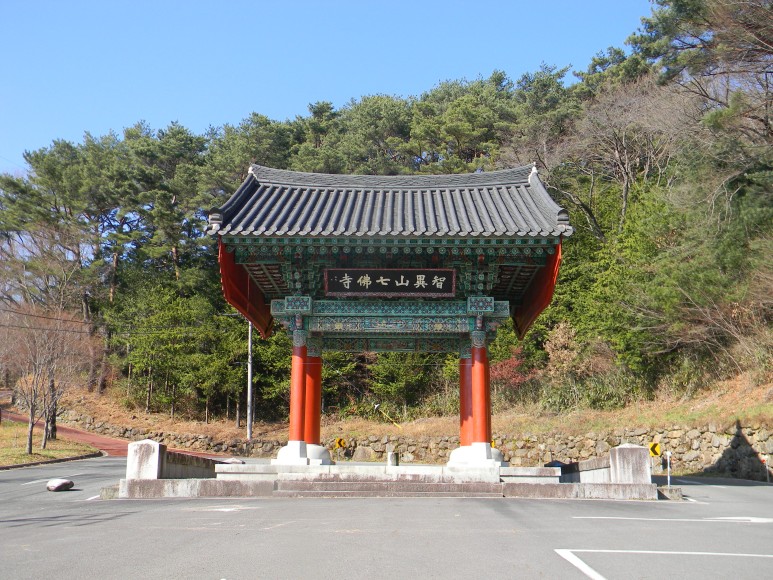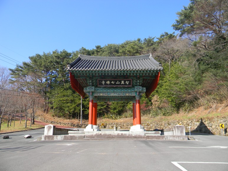 맞배지붕을 지닌 일주문이 '지리산 칠불사' 현판을 내밀며 마중을 나왔다. (일주문 앞에 주차장이 닦여