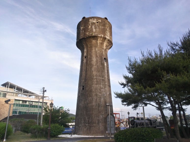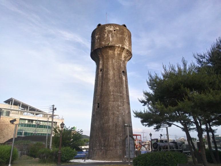 모습의 급수탑과 네모난 급수탑 등 급수탑 2기가 자리잡고 있다. 이들을 중심으로 급수탑공원이 닦
