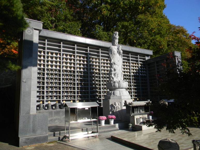 파리도 능히 미끄러질 정도로 하얀 피부를 지닌 커다란 관세음보살상 뒤로 조그만 관세음보살이 가득