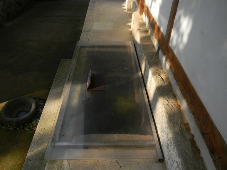 무덤 석물로 여겨지는 견고한 돌덩이라가 뜨락 한쪽에 자리해 가을 햇살을 즐긴다. (이때가 9월이었