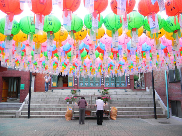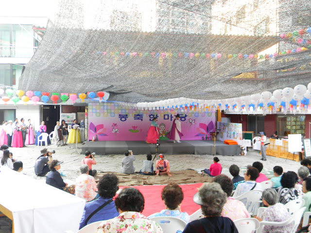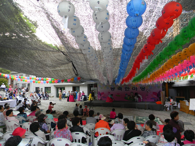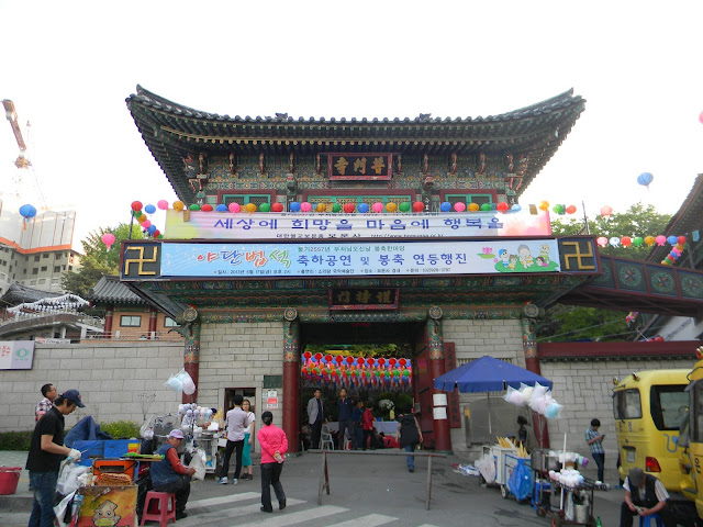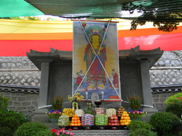 관불의식 현장 바로 뒤쪽에는 괘불이 거룩하게 자리하여 경내를 비추고 있었다. 괘불은 초파일 이나 절 행사일에 잠깐씩 얼굴을 비추는 비싼 존재로 평소에는 친견하기가 거의 불가능하여 지 금까지 270곳이 넘는 고찰(古刹)을 답사했음에도 그를 만난 절은 고작 열 손가락 내에 불과하 다. <보문사, 홍은동 옥천암, 우이동 도선사, 돈암동 흥천사, 강남 봉은사, 고양시 흥국사 정 도> 그것도 봉은사(奉恩寺)와 도선사(道詵寺)를 제외하면 모두 초파일에 만났다. 그러니 초파 일에 기를 쓰고 절투어를 벌어야 괘불(특히 오래된 괘불)에 대한 가려움을 어느 정도 긁을 수 있다.