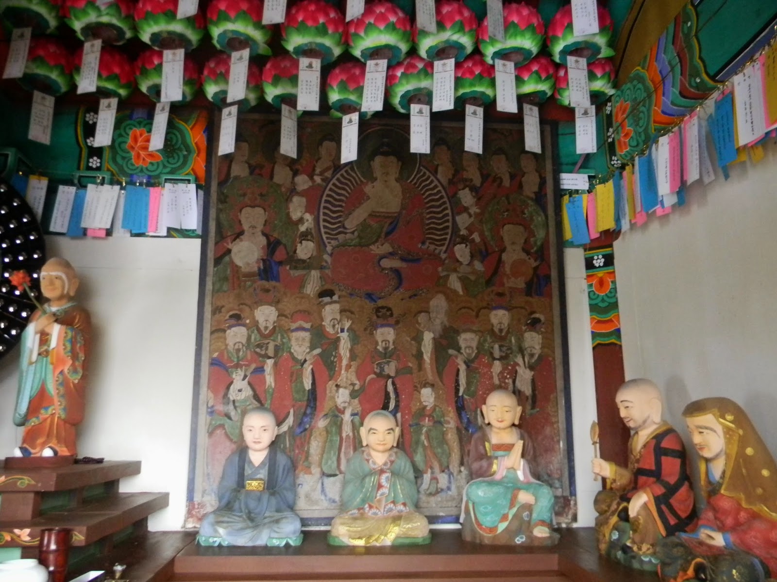 나한전은 근래에 지어진 것으로 석가여래와 그의 열성제자인 16나한(羅漢)의 거처이다. 석가 여래의 광배(光背)가 매우 특이한 모습을 취하고 있는데, 광배 테두리는 검은색으로 이루어져 있으며, 광배 중앙에 거울까지 달려있어 잠시 자기 자신을 돌아보게 만든다. 아마도 그런 의 도로 거울을 갖추었을 것이다. |
