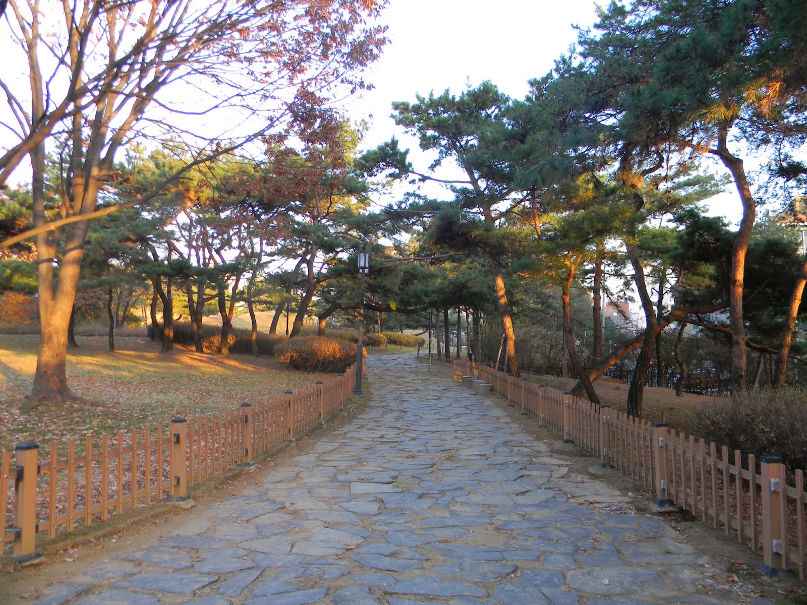 제2호분 서쪽에는 다소 허전해보이는 회화나무 하나가 철을 지팡이 삼아 몸을 지탱하고 있다. 그는 240년 정도 묵은 것으로 높이 12m, 둘레 2.3m인데, 2015년 이후, 회화나무와 제2호분 주 변에서 석촌동고분군의 숨겨진 이야기를 캐내려는 굳은 집념으로 나무 주변에 펜스를 두르고 발굴조사를 벌이고 있다. 다른 나무들은 거의 생생한 모습이나 이 나무는 벌써부터 노화가 되었는지 잎사귀는 커녕 가 지 조차 부실해 머리숯 일부만 남은 애처로운 신세가 되었다. 몸도 썩 좋아보이지 않아 저러 다 골로 가는 건 아닌지 심히 우려된다. |