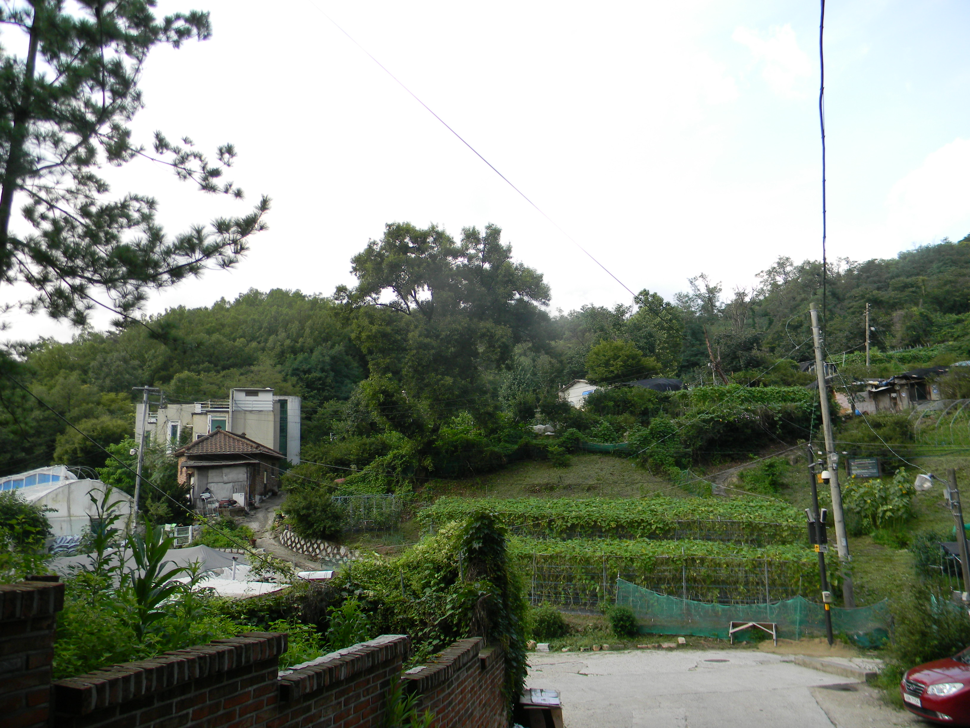 계곡 너머로 2012년에 지어진 커다란 농원용 비닐하우스가 있다. 도심에 있는 잇점을 살려서 요즘 잘나가는 허브 식물이나 과일 농장, 채소 농장, 농사 체험 현장 등으로 꾸리면 괜찮을 듯 싶다. 아무리 도심 속이라고 해도 이곳이 농촌인 것은 변함이 없다. |