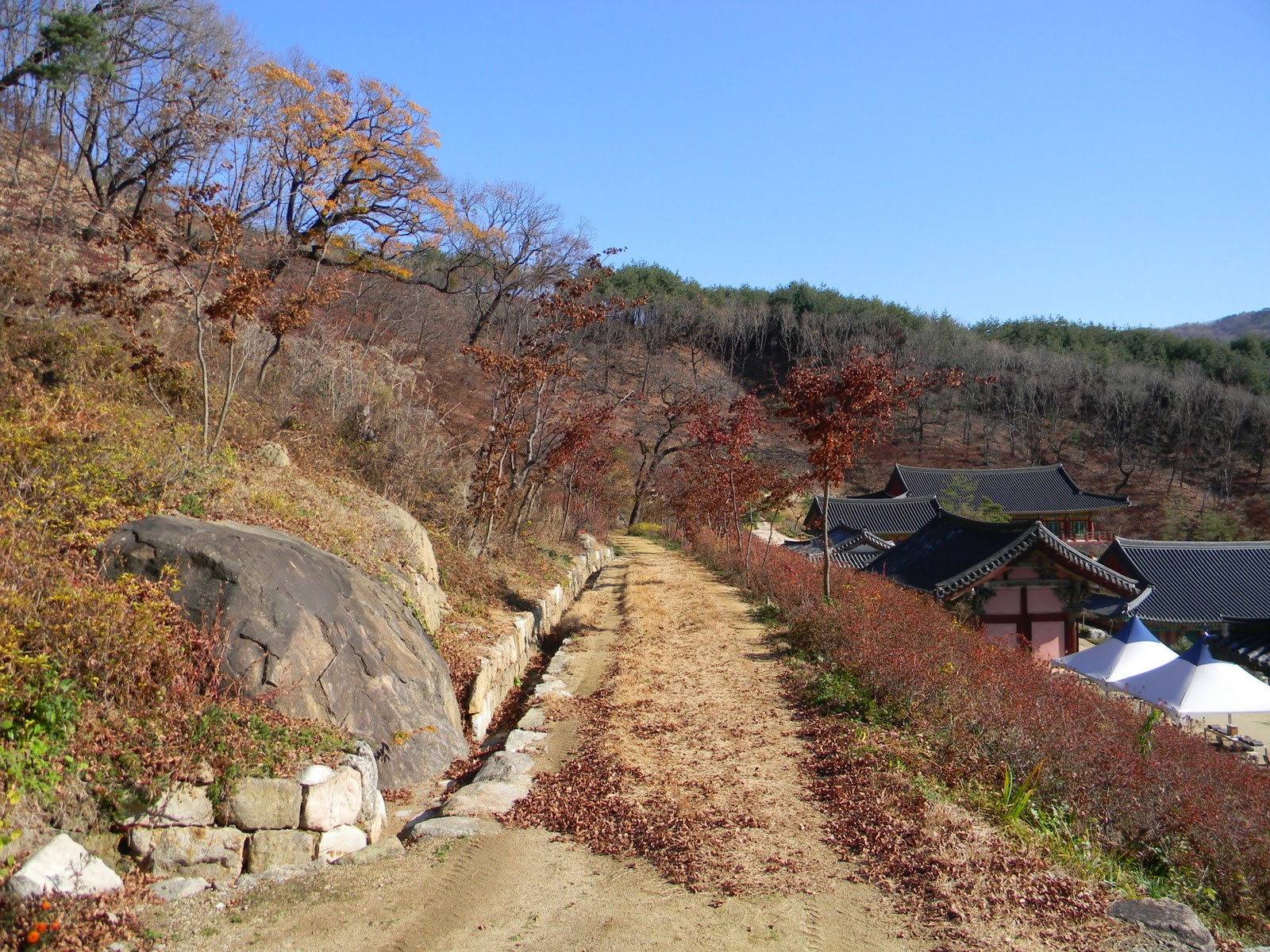 속세로 나갈 때는 돌계단이 있는 회전문 대신 제3주차장으로 내려가는 담장(토담)길과