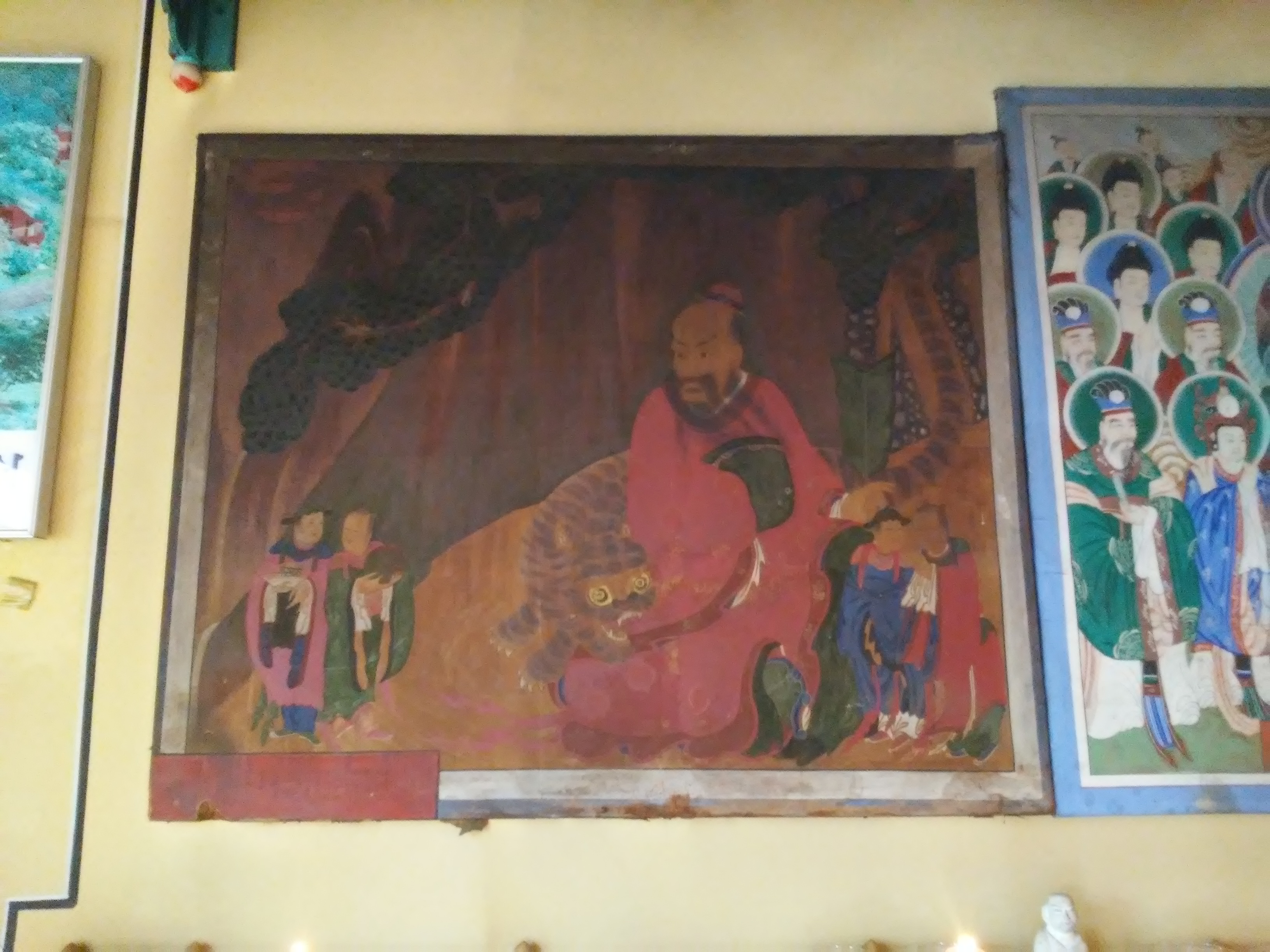 산신도는 대웅전 동쪽 벽에 칠성도(七星圖), 신중도(神衆圖)와 나란히 걸려있다. 그들