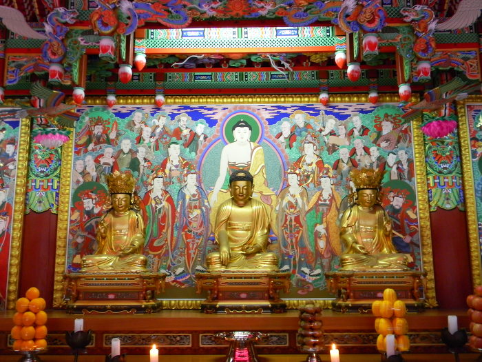 39. 천축사 대웅전 목조석가삼존불 (석가여래, 미륵보살, 제화갈라보살)