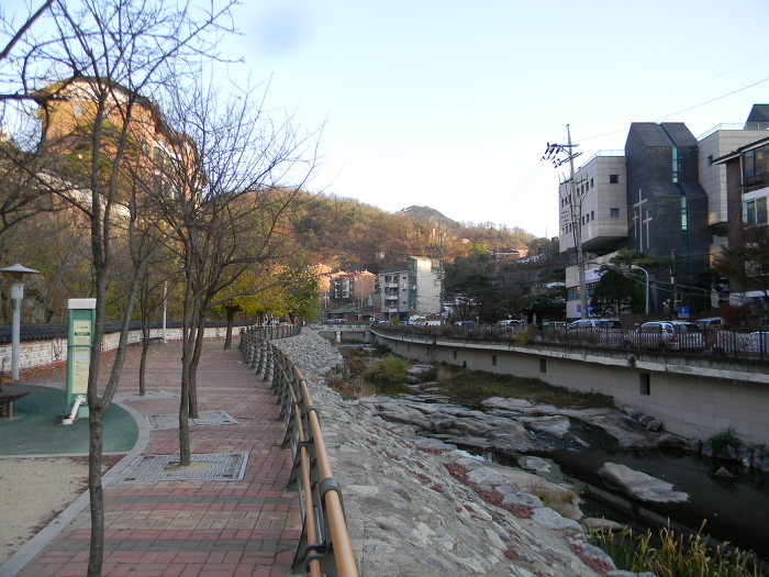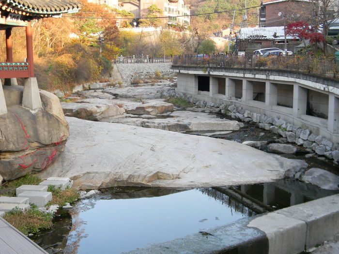 8. 세검정 동쪽 산책로에서 바라본 세검정과 홍제천