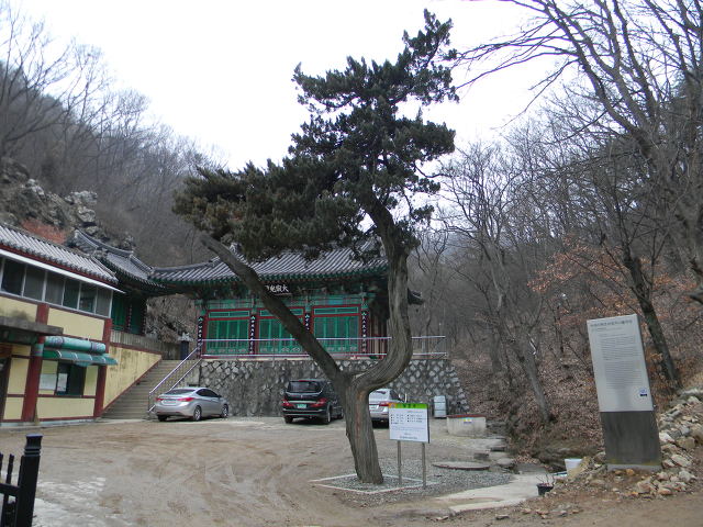 ▲ 대적광전 앞에서 바라본 옥류각과 소나무