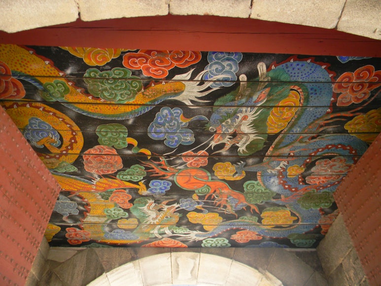 4. 광희문 천장에 화려하게 그려진 청룡과 황룡, 여의주의 위엄