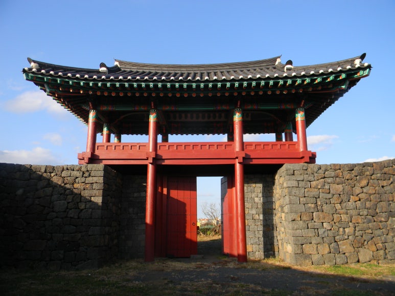 명월성 성곽과 성문이 거의 사라진 것을 근래 남문과 그 주변 성곽을 일으켜 세웠다. 제주도는 현무