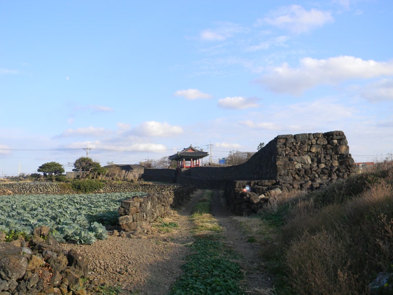 11. 명월성 남문 안쪽(북쪽) 들판과 현무암 돌담길