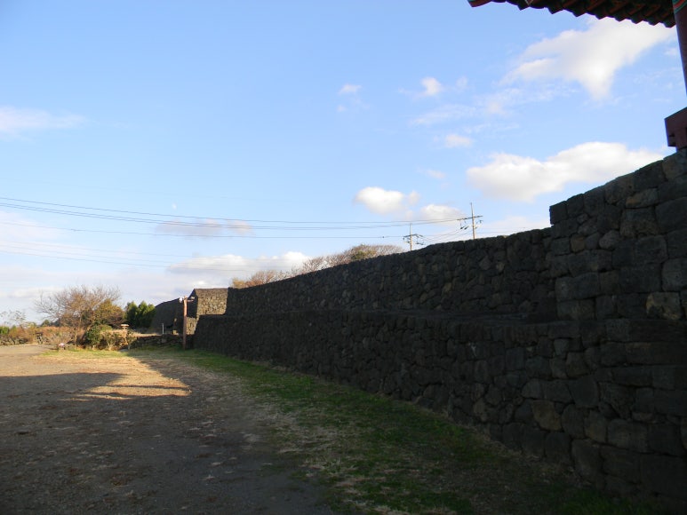 2. 시커먼 현무암 피부를 지닌 명월성과 그 앞 들녘에 닦여진 같은 피부의 돌담