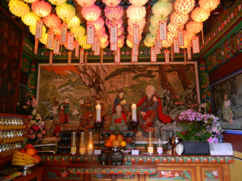 경내에서 가장 하늘과 가까운 곳에 산신각이 자리잡고 있다. 그는 1칸짜리 맞배지붕 집으로 산신의