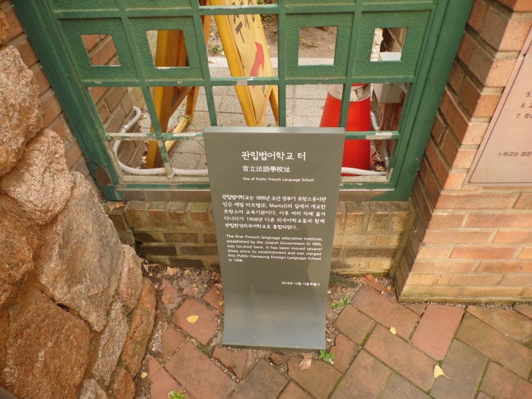 정동길 중간에 있는 창덕여중 정문 앞 동쪽 구석에 관립법어학교를 알리는 키 작은 표석이 있다. 비