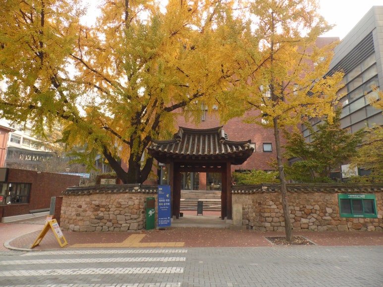 정동길 중간쯤에 자리한 이화여고 정문 서쪽에는 옛 이화학당의 정문인 사주문이 있다. 이화학당