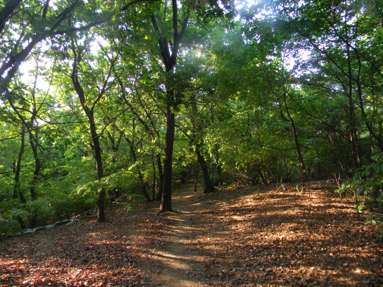 길은 거의 완만해 거닐기는 좋다. 그리고 숲이 매우 삼삼하여 숲내음과 산림욕을 즐기기에는 그만이