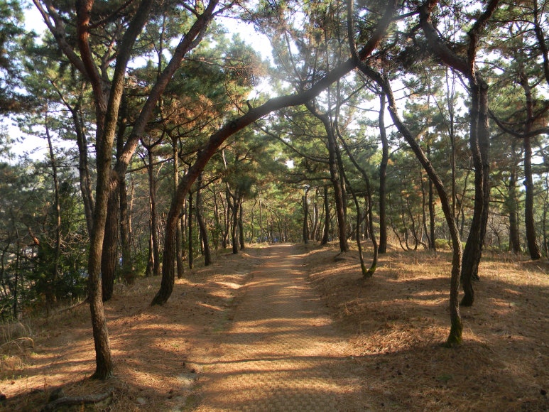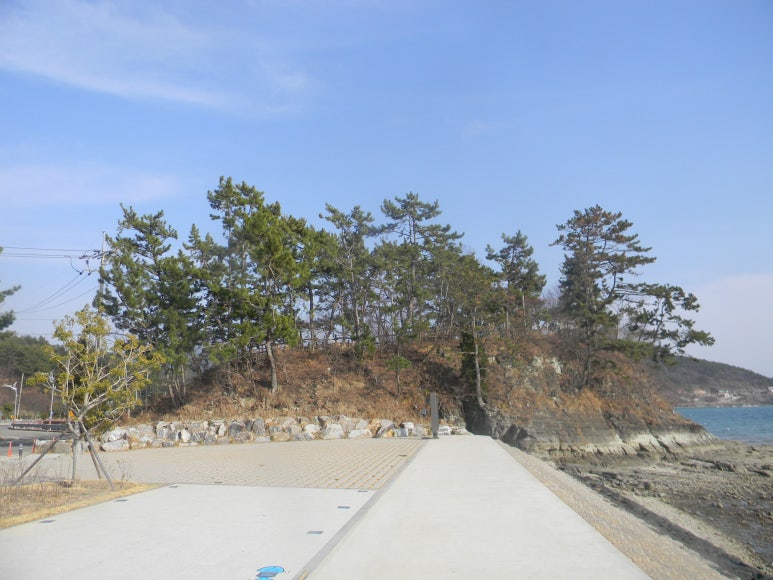 예전에는 섬이었으나 지금은 육지의 일원이 되었으며, 언덕 밑도리에는 나무데크 탐방로가 입혀져