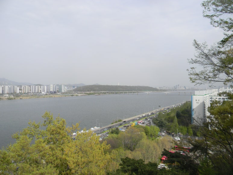 멀리 관악산(冠岳山), 북한산(삼각산)이 시야에 들어오고 가까이로 탑산과 선유봉(仙遊峰), 한강 줄