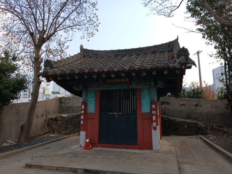 담장 안에 비석을 지닌 1칸짜리 사당이 있다. 비각 위쪽에는 '故海平烈女祠(고해평열녀사)'란 현판이