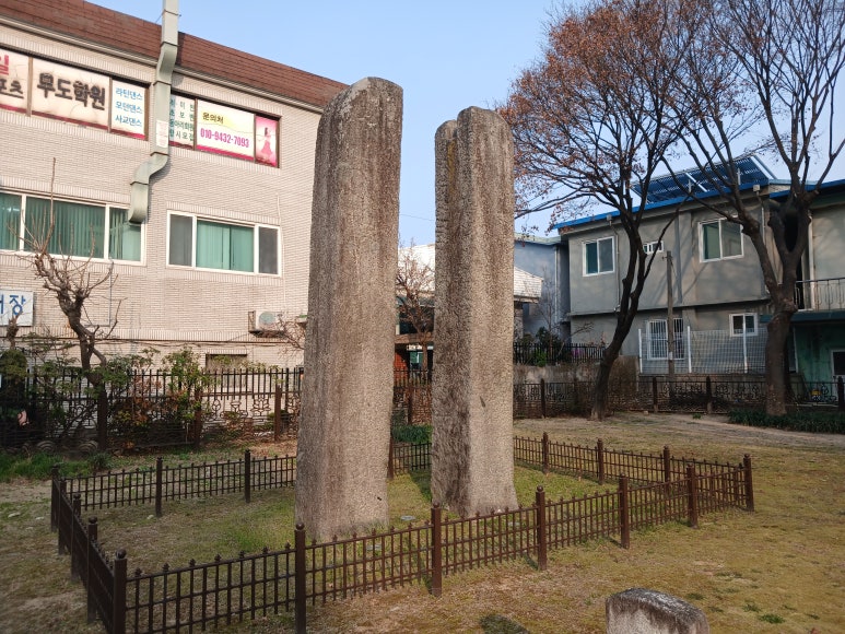 이 당간지주는 2년 만에 인연이다. 당간지주 주위로 나무와 수풀이 있는 공간이 닦여져 있는데, 예전