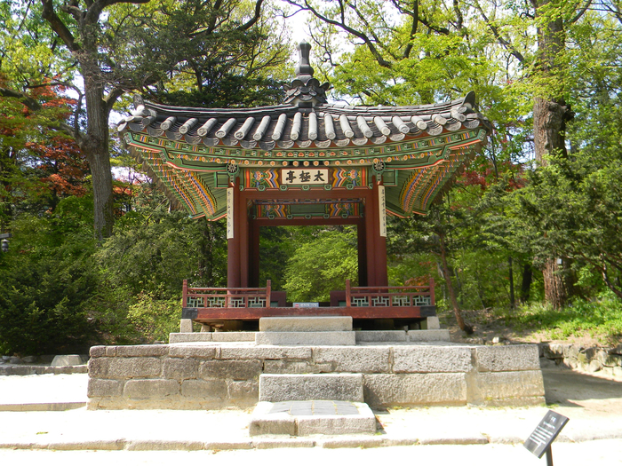 창덕궁 후원 옥류천 구역에 자리한 태극정은 1칸짜리 팔작지붕 정자이다. 내부에 마루를