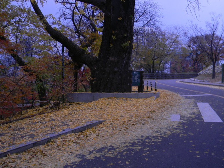 늦가을에 잠긴 남산 북측순환로(남산공원길)와 일본군위안부기억의터, 480년 묵은 예장동 은행나무