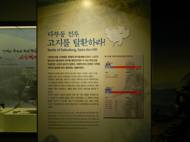 칠곡호국평화기념관 호국전시관 내부 (낙동강방어선, 칠곡 금무봉 전투, 328고지 전투, 다부동전투, 볼링앨리전투)