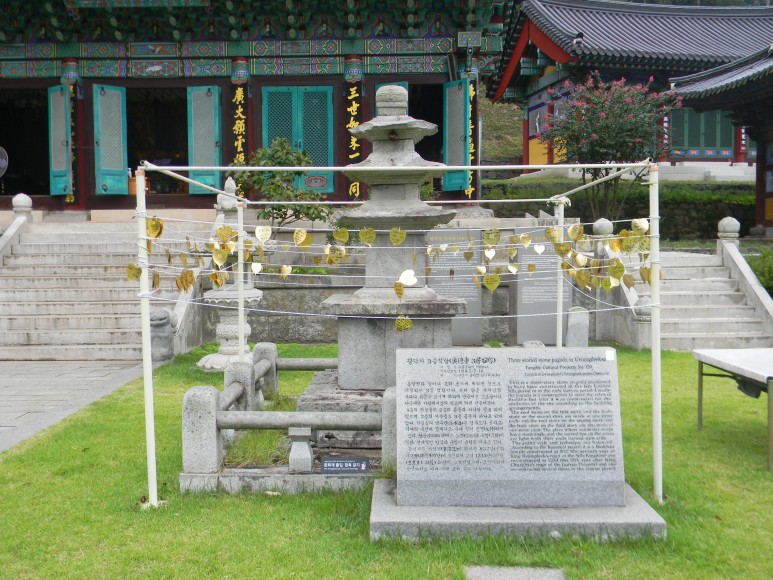 리장식이 남아있다. 지붕돌이 조금 뜯어진 것 외에는 상태도 양호한 편이며, 탑 좌측의 명부전 앞에
