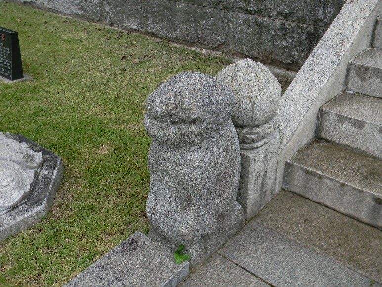 대웅전 앞계단 양쪽에는 조선 때 만들어진 조그만 돌사자 2개가 귀엽게 자리하고 있다. 이들은 절과