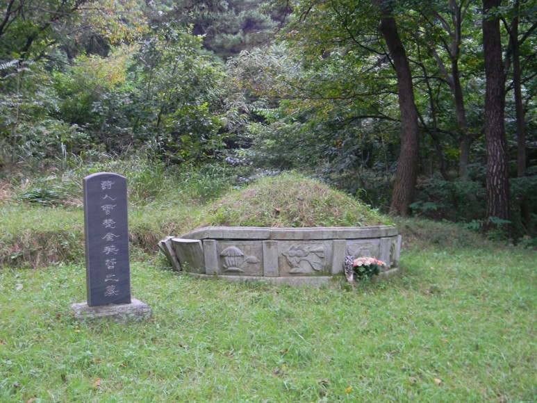 에 달아놓은 것이다. 호석에는 여류시인의 유택에 걸맞게 화초가 새겨져 있는데, 봉분 뒷쪽 호석에