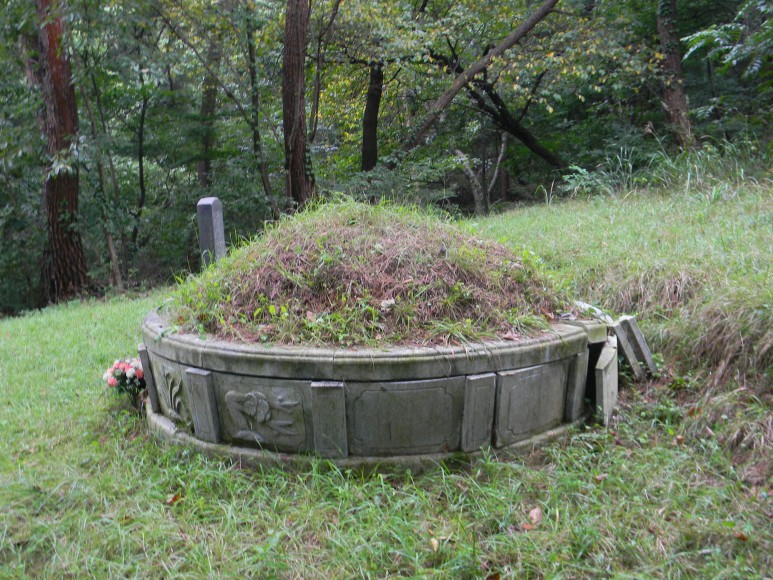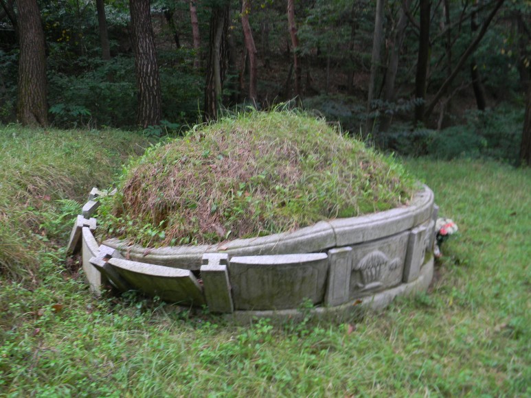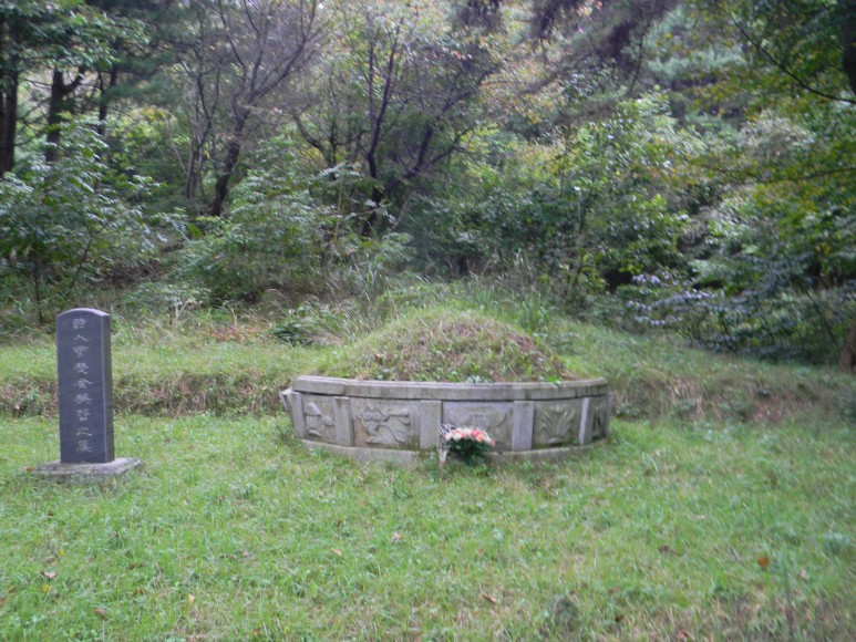 작은 크기의 봉분이 이곳 무덤의 전부로 무덤 아랫도리에 둘러진 호석과 그 앞 묘비는 1974년 이후