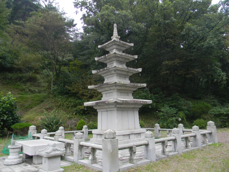 통 법당 앞에 두기 마련이나 광덕사는 늙은 3층석탑이 이미 법당 앞에 있어 공간이 넓은 이곳에 별도