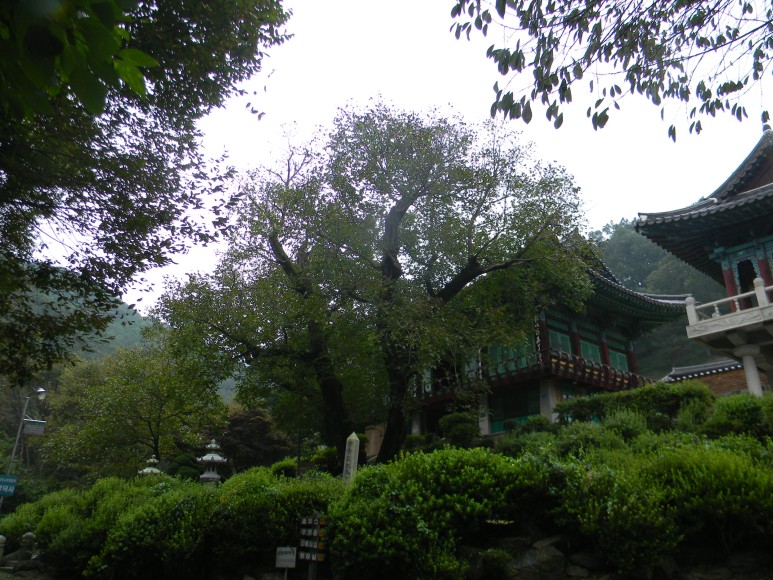 광덕사 경내를 크게 가리고 앉은 보화루 앞에는 광덕사의 오랜 명물인 늙은 호도나무가 높이 솟아