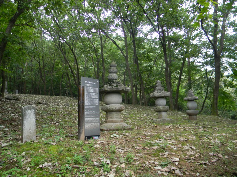 원당형 부도탑 3기가 앞에 나란히 자리해 있고, 뒤쪽으로 멀리감치 석종형 부도탑 1기가 따로 자리