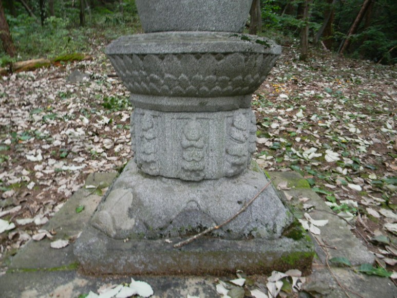 이들과 조금 떨어진 석종형 부도는 주인이 전하지 않는 탑으로 가운데 받침돌 8면에 신장상이 새겨