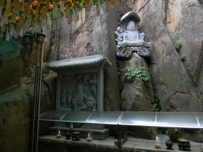16. 대웅전 뒤쪽 바위에 깃든 칠성탱과 산신탱, 약사여래상
