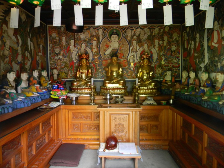 나한전은 석가여래와 그의 열성제자인 16나한의 공간이다. 1칸짜리 맞배지붕 집으로 1964년 이후