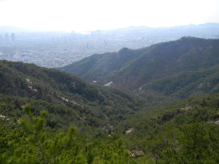 27. 아차산 주능선길(3보루~5보루 구간)에서 바라본 긴고랑계곡과 용마산, 광진구, 성동구 지역