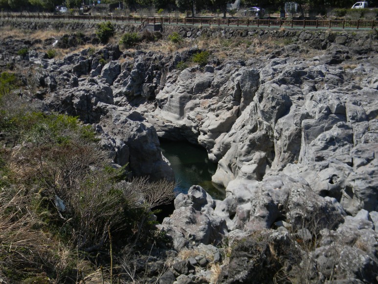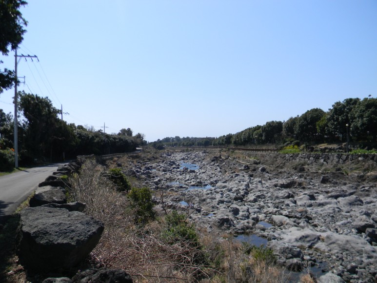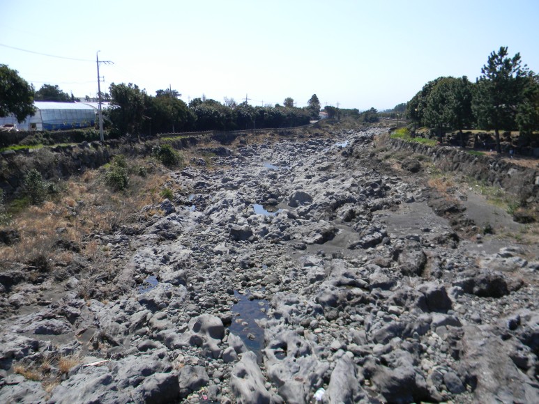 제주도에 있는 하천과 계곡들은 현무암 피부의 한계로 대부분 저런 모습이다. 비가 많이 오면 그런