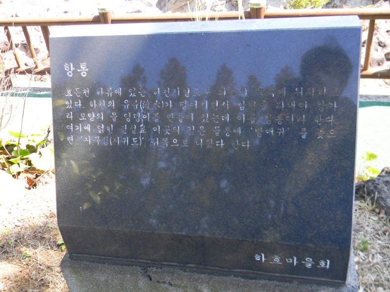 항통이라 부른다. 여기에 얽힌 전설에 따르면 이곳 소(못)에 '방애귀'를 꽂으면 지귀도(지꾸섬) 뒤쪽