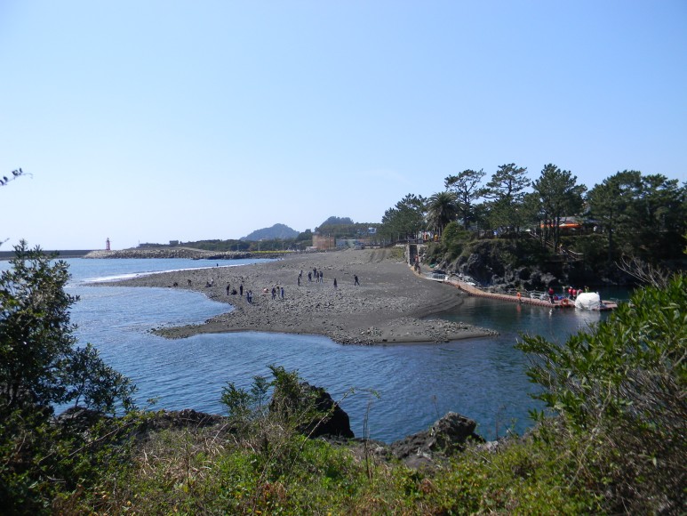 은 모래해변이 펼쳐져 해변이 흑색 피부를 띄는데, 해변 길이는 300m 정도로 짧다. 제주올레길6코