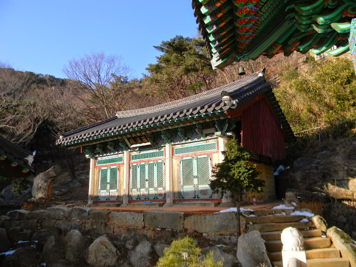 산신각에서 동쪽으로 난 조그만 길을 조심스럽게 내려가면 벼랑 위에 조마조마하게 버티고 앉 |