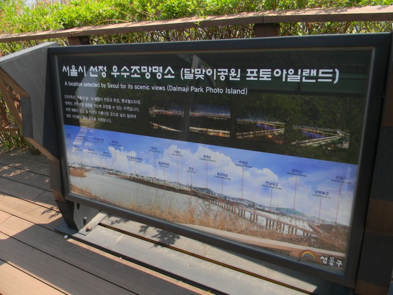 공원의 유일한 조형물로 동그란 테두리 속에 동호대교와 한강, 한남대교, 그리고 멀리 관악산과 삼